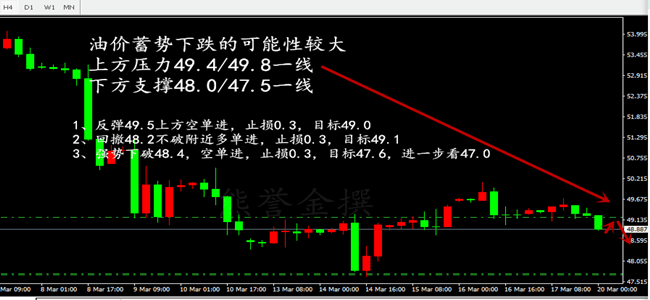 目前结构来看,原油月线目前偏空,周线、日线空头趋势显现,油价蓄势下跌的可能性较大,日内上方压力还是49.4/49.8一线,下方支撑48.0/47.5一线,林溪老师预计原油后势将从48.0附近开始上涨反弹至一定位置继续下挫。早间的思路大致如此,实操时可垂询林溪老师就要落实到点位进出场执行。