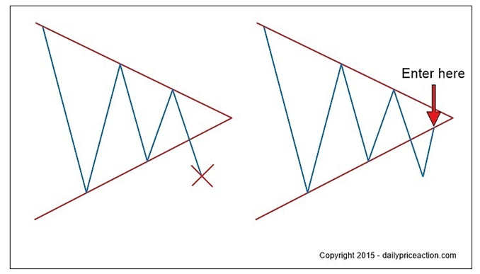 通常,此类形态突破时,市场将再次试探被突破水平,将其作为支撑位或阻力位。这种再次试探提供了完美的入场机会,然而需要耐心等待。