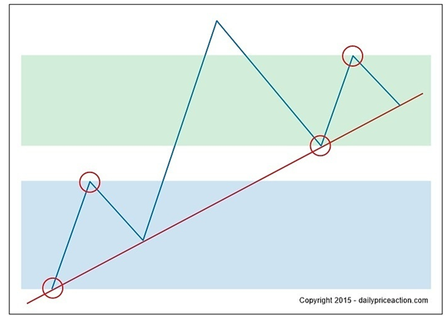 我总是说,如果水平并不明显,就应该忽略。上图中的3点明显与上下趋势线不一致,因此是无效的。