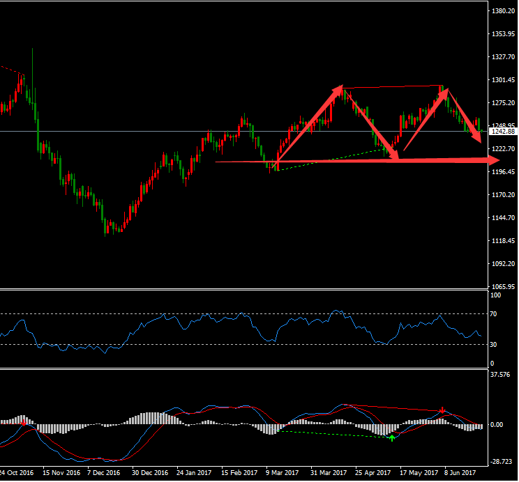 随着美元指数下滑,欧元兑美元也反弹至一周高位,不过德拉基的一番讲话令欧元变得疲软。在周一的讲话中,欧洲央行行长德拉基再次为超宽松货币政策辩护,认为超低利率可以创造就业机会,促进经济增长,最终缓解社会不平等。此外,希腊国债尚不够格纳入QE。这一表态令欧元回吐此前全部涨幅。 昨日汇市还有一件大事备受关注:有外媒报道称英国首相特雷莎•梅与北爱尔兰民主统一党(DUP)达成协议。随后北爱尔兰民主统一党领导人回应证实这一消息。受此影响,英镑兑美元一度升至一周以来的最高水平。 本周美国方面还将公布6月消费者信心指数、成屋销售、原油库存、第一季GDP终值和个人消费支出(PCE)物价指数等重要数据,同时美联储主席耶伦等高官将发表讲话,若这些官员释放出些许的鸽派措辞,就可能打开美元指数的进一步下跌空间。 原油黄金避险属性产品: 黄金“抄底论”昨日哭晕在厕所了!20亿美元抛盘,一度在1分钟闪崩近18美元,鬼知道市场干嘛这么嚣张。虽然目前黄金勉强回到了1240美元/盎司水平附近。但市场仍惊魂未定,因为美联储主席“椰奶”今晚要来了,黄金价格随时有可能崩塌。而投资者还得担心昨日闪崩行情是否再度重现。