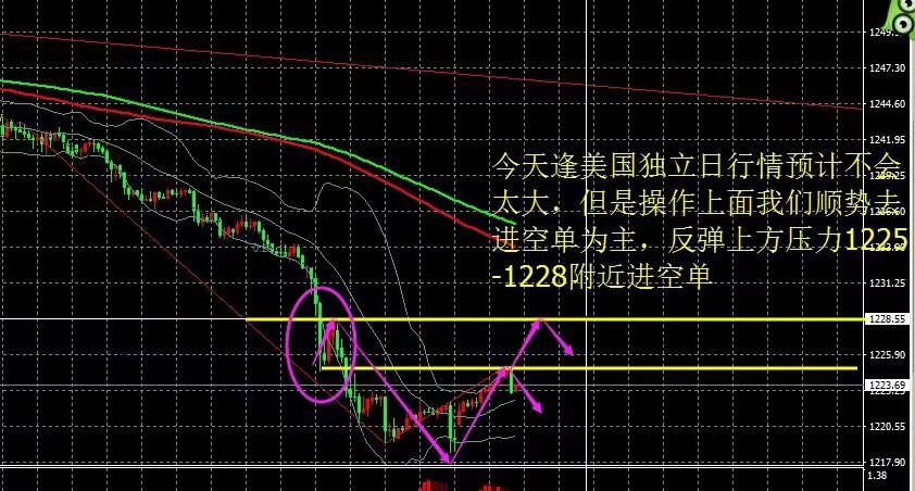 黄金操作建议: 1、建议反弹至1225-1228附近空单进场,止损4美金,目标看1220-1215; 2、多单暂不给出,先看下方支撑1214破位情况。