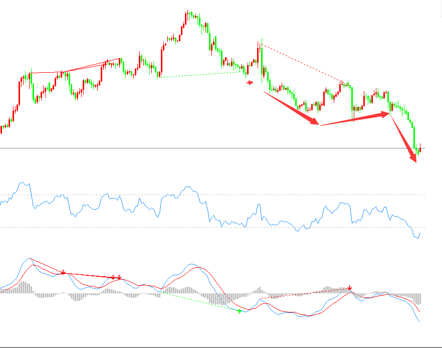 从四小时线看,黄金十二连阴奠定了短期黄金的一个空头趋势,然后KDJ死叉向下,三线缩口向下运行,MACD快慢线死叉向下绿色能量柱持续增量,所以短期来说黄金是一个空头趋势,当然目前黄金显现出来的大趋势也是一个空头趋势,但玄生认为此次虽然下跌趋势很强,但是终究无力,难以突破1200最后一线支撑。