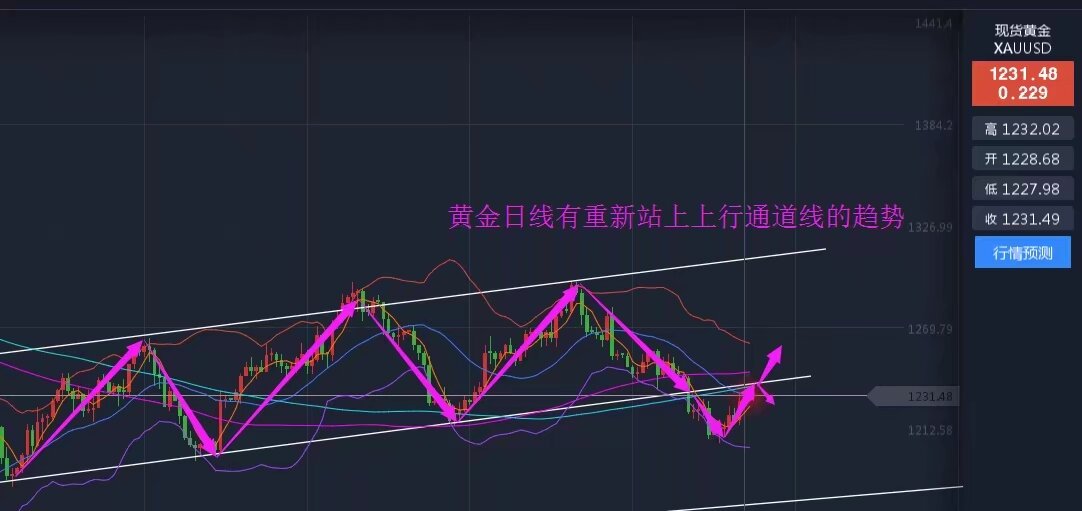 黄金周线收取一根带下影线的中阳线,布林带走平,金价震荡于中下轨之间,RSI勾头向上,暂时缓解下行趋势,本周初上方关注MA5压制,若不能突破会先走出一波低位震荡整理,下方依然重点关注1220-1219附近支撑;日线方面RSI金叉向上,金价测试中轨附近压制,日线MA5和MA10金叉向上支撑于1222附近,日线方面金价突破中轨压制之间短线看1233-1222区间震荡;四小时方面布林带向上,金价震荡于上轨附近,短线上行力度减弱,下方重点关注中轨附近1222-1221附近支撑,上方关注能否站上1234附近MA120短线压制;综合来看日内金价短线先看1221-1234区间震荡调整,大区间关注1240-1219;操作上我建议轻仓高沽低渣!